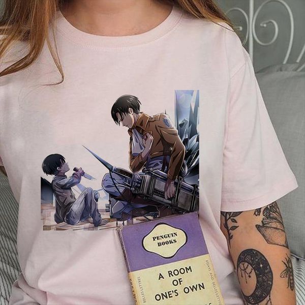 summer harajuku attack on titan womens print tshirts design cotton short sleeved aesthetic japanese anime pink t shirt, White