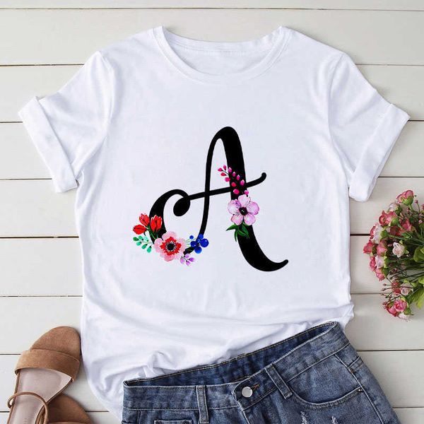 summer letter printed women t shirt short sleeved o neck tees shirt for girls tee female clothing korean fashion t-shirt x0527, White