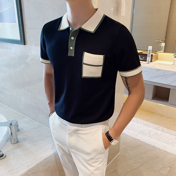 summer mark men's shirt casual short sleeve thin business dress polo knit for the man's clothes equt, White;black
