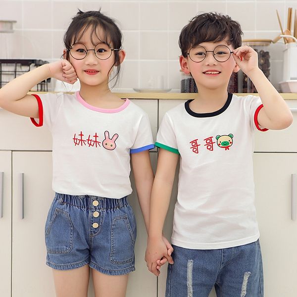 summer new clothing cotton short sleeve t-shirt korean cartoon boy's girl's clothing children's children's base shirt, Blue