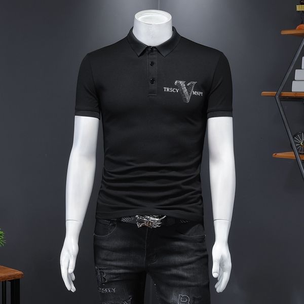 summer new man shirt mens v letter design cotton polo men short sleeve quantity e0204 zsws, White;black