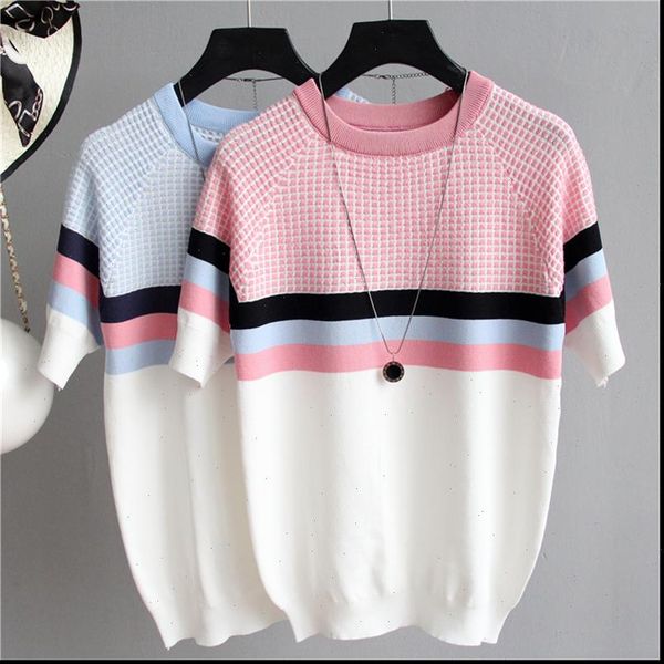 summer short sleeve korean knitted women sweaters pullover all match basic thin pull femme jumper female pink, White;black