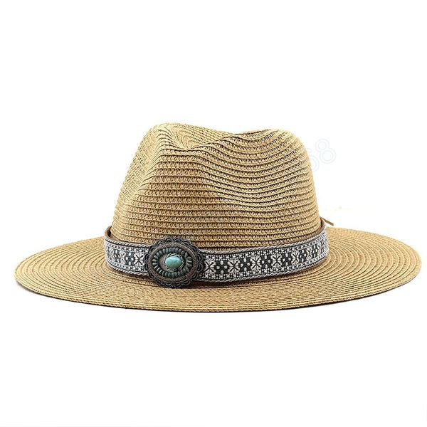 summer straw hat for women men uv protection natural panama hat wide brim sun hat men classic fedora beach hat, Yellow