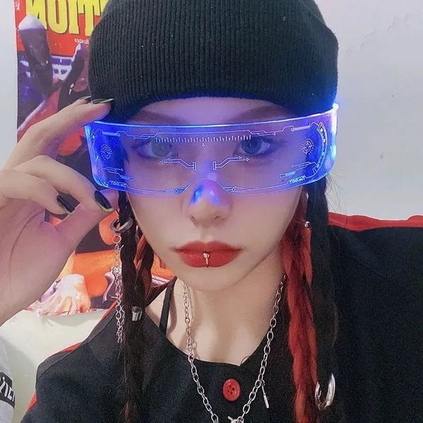 summer sunglasses led luminous retro punk style glasses men women party christmas halloween glass colorful goggles, White;black
