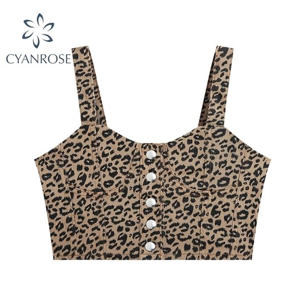 summer women's leopard print denim all-match party clubwear night vest female e-girl bar buttons camisole 210515, White