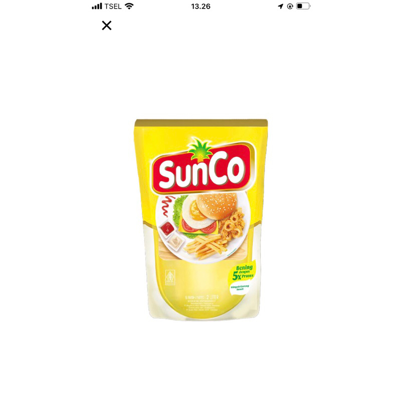 SunCo Minyak Goreng 2 L adalah minyak goreng masak yang diproduksi dari buah kelapa sawit segar pilihan dan difortifikasi dengan vitamin A. Diproses dengan teknologi mutakhir melalui 5 tahap pemrosesan, yakni 3 kali proses pemurnian dan 2 kali proses penyaringan sehingga menghasilkan minyak goreng yang baik dan berkualitas. Adapun ciri minyak goreng yang baik adalah warna minyak yang bening, tidak mudah beku, dan karakternya seperti air. Warna Sunco yang bening dan tidak cepat hitam atau teroksidasi dapat meminimalkan risiko kanker. Berbeda dengan minyak goreng sawit lain, Sunco tidak mudah beku karena mengandung asam lemak jenuh terendah yang dapat meminimalkan peningkatan kolesterol jahat. Tak hanya itu karakter Sunco yang seperti air, tidak lekat, dan tidak menyerap berlebih di makanan, membuat kegiatan makan lebih nyaman tanpa rasa gatal di tenggorokan.