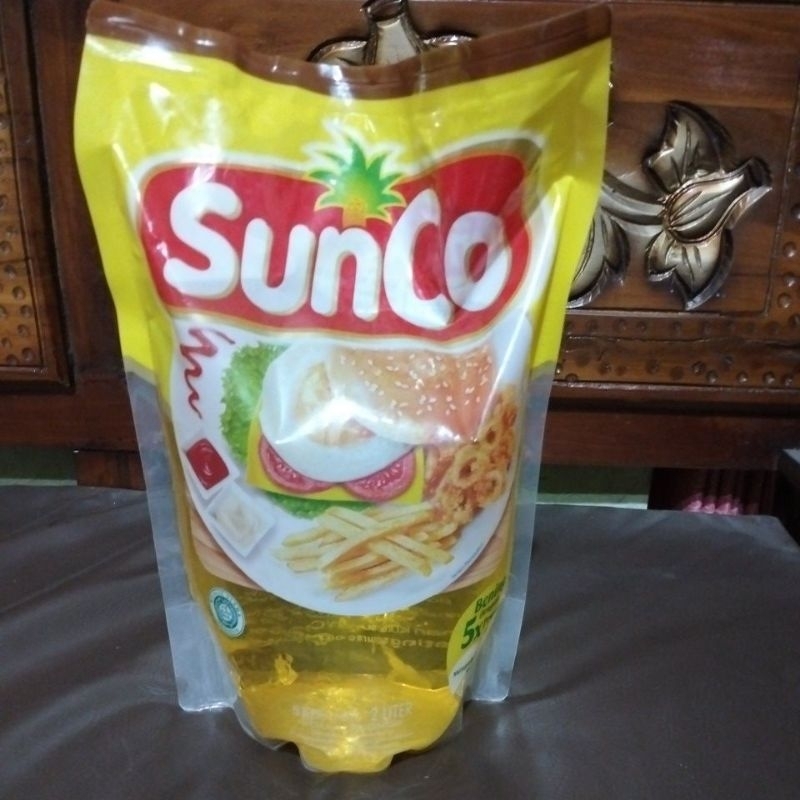 sunco minyak goreng dengan 5 kali penyaringan. pasti bening nya
