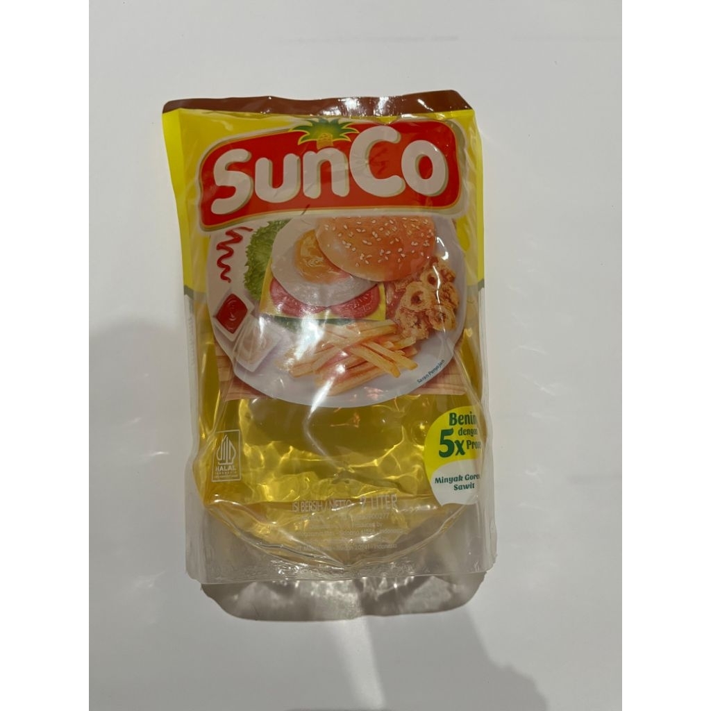 SunCo minyak goreng 2 liter adalah minyak goreng yang diproduksi dari buah kelapa sawit segar pilihan dan difortifikasi vitamin A. Diproses dengan teknologi mutakhir melalui 5 tahap, yaitu 3 kali pemurnian dan 2 kali penyaringan. Hasilnya adalah minyak goreng yang bening, tidak mudah beku, dan memiliki karakteristik seperti air