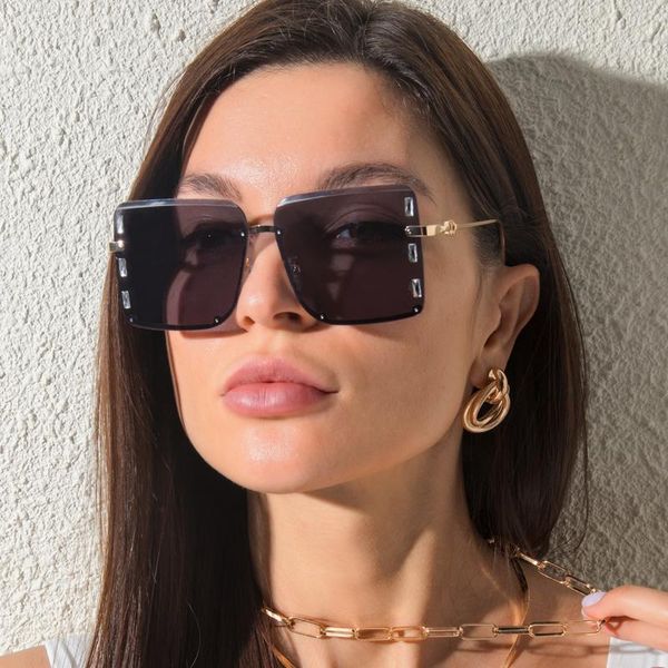 sunglasses 2021 metal frameless cut-edge men and women trend personality street pography travel seaside must-have, White;black