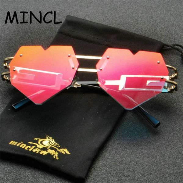 sunglasses fashion women siamese love heart men metal frameless sun glasses gradient eyeglasses party fml, White;black