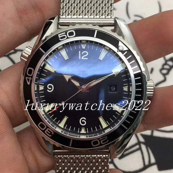 super factory watch for men 43mm black dial stainless steel automatic mechanical movement sapphire glass sport wristwatch, Slivery;brown