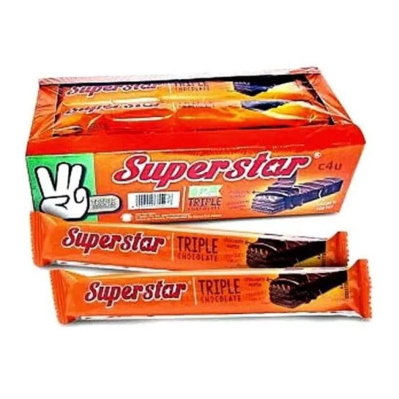 Superstar wafer Stick Cokelat merupakan salah satu varian wafer stick dari Mayora yang dibuat dengan memadukan resep rahasia original dari ahli pembuat cokelat dan bahan-bahan pilihan berkualitas untuk menghasilkan wafer stick renyah yang memiliki kemurniaan, kelembutan, dan kesempurnaan rasa. Wafer stick ini terdiri dari kombinasi wafer krispi, krim cokelat premium yang nikmat, dan susu lezat di setiap gigitannya, memberikan sensasi menikmati coklat premium yang tak terlupakan. Diproduksi dengan teknologi modern dengan bahan-bahan berkualitas sehingga menghasilkan wafer stick sebagai camilan yang pas dan bermutu baik.