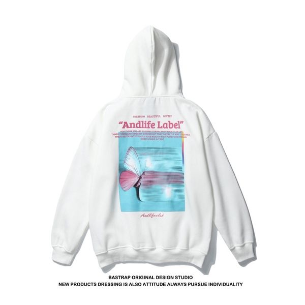 surf autumn and winter 2020 hip hop dream butterfly print couple hooded sweater fashion brand men's clothing, Black