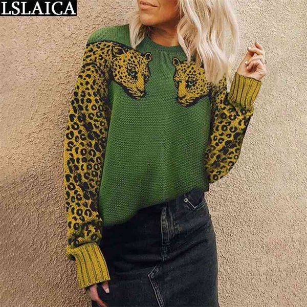 sweater women round neck leopard patchwork knit long sleeves autumn casual ladies knitwear crop chandail+femme 210515, White;black