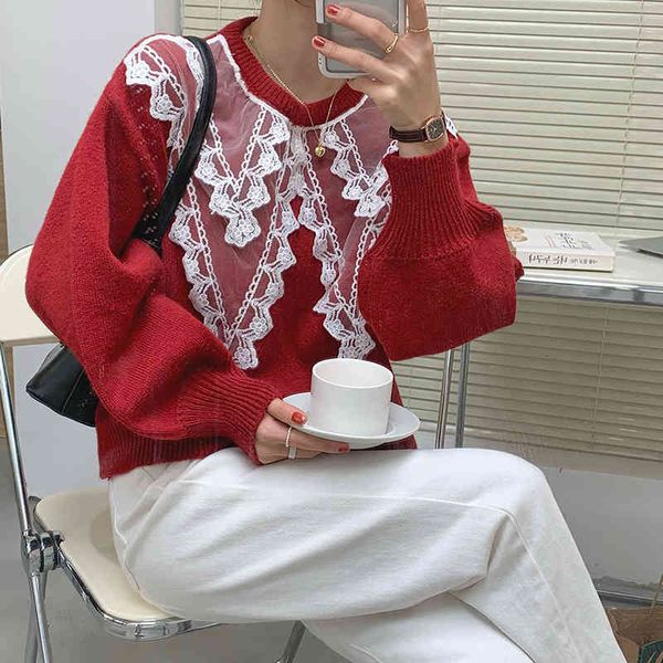 sweaters brief stylish patchwork lace office lady chic gentle loose streetwear knitted women pullovers sweaters, White;black