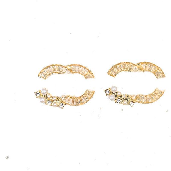 sweet 18k gold plated stud earrings luxury brand designers double pearl letters stud clip geometric famous women 925 silver crystal rhinesto, Golden;silver