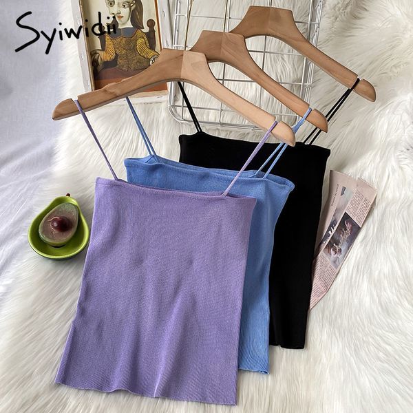 syiwidii knitted bow camis women casual crop screw thread solid white tank summer fashion new short clothing 210417