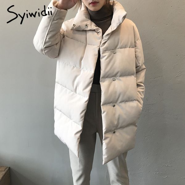 syiwidii winter jaet women thien warm ladies long coats 2021 fashion stand collar single breasted oversized loose outerwear, Black