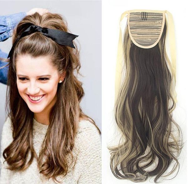 synthetic wigs womens ladies long straight wavy ponytail hair clip in binding wrap around 18039039 22039039 hairpiece8932327, Black