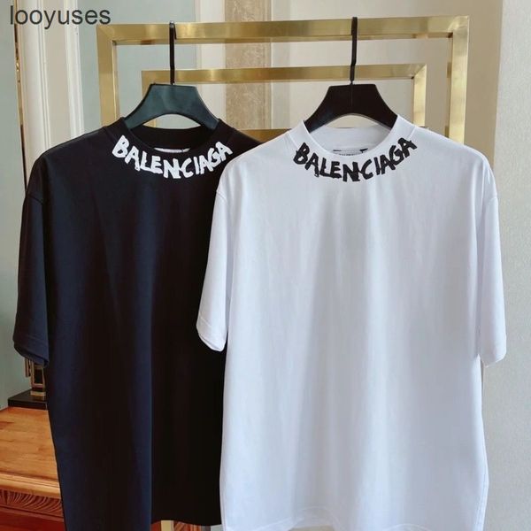 t shirt balencaigass level version 22 summer b neckline letter ins short sleeve t-shirt men women the same student couple fashion, White;black