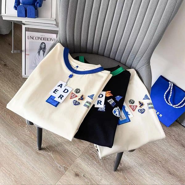 t-shirt korean version of ader error spring and summer new highquality embroidered irregular square collar shortsleeved couple tshirt, White
