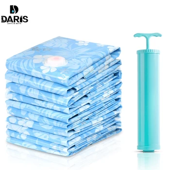 Space Save Premium Reusable Vacuum Storage Bags Save 80% More Storage Space Double Zip Seal Leak Valve Travel Hand Pump Included