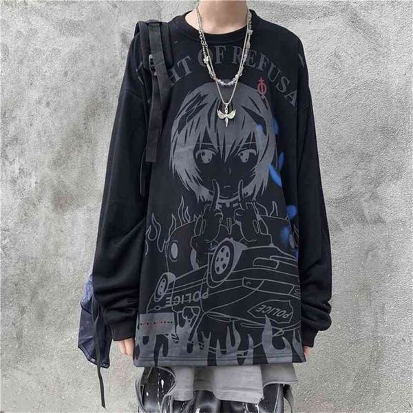 t-shirt men and women retro high street dark school students secondary anime printing hip hop long sleeve harajuku 210720, White