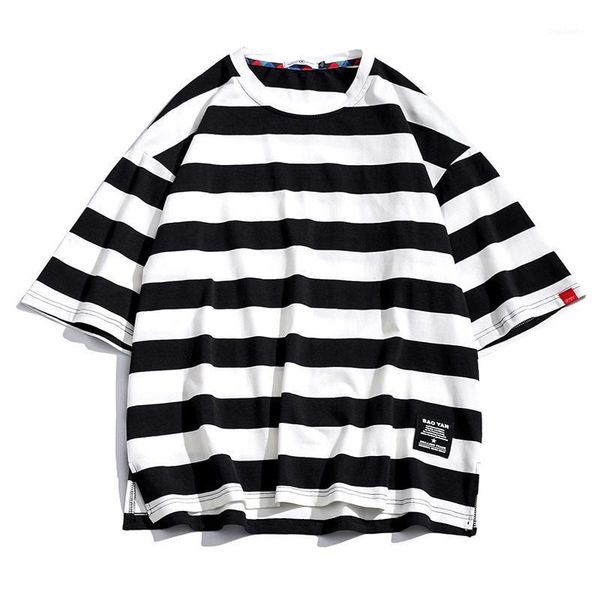 t shirt mens cotton tshirt striped for men tee summer japanese casual t-shirts streetwear fitness tees oversized hip hop1, White;black