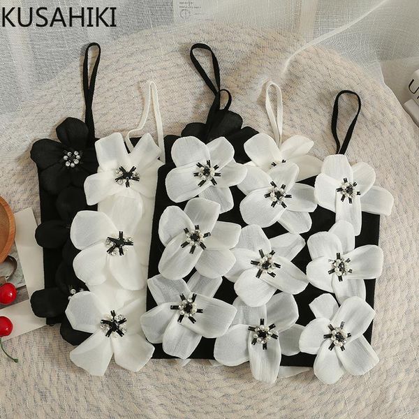 t-shirt nomikuma chic 3d flowers tank women 20220 summer new fashion sling vest korean slim short pullover camis female, White