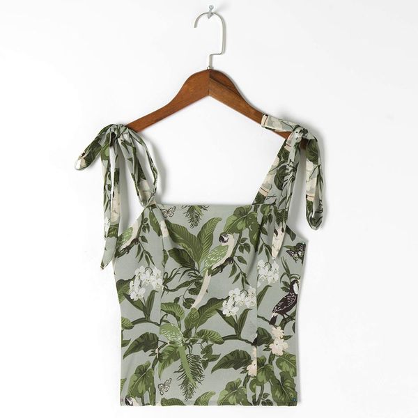 t-shirt summer camisole chiffon women 2021 beach style tropical print crop straight neck sleeveless tie strap cami top, White