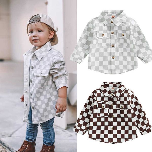t-shirts focusnorm 1-5y toddler baby boys casual shirts checkerboard print long sleeve lapel button closure blouse l230309, Blue