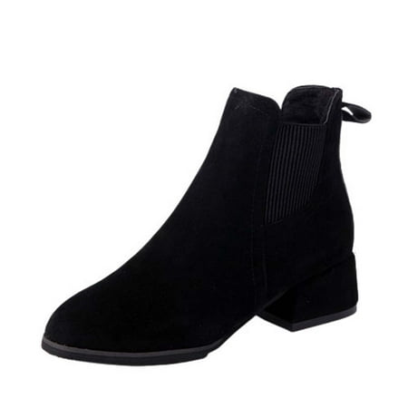 Platform Boots Women Snow Boots Women s Fall Winter Solid Color Flock Boots Chunky Heel Middle Short Boots Round-Toe Boots Black