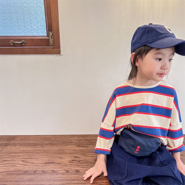 t-shirts spring autumn children base t shirts fashion striped cotton kids girl tees 2 colors loose casual 230707, Blue