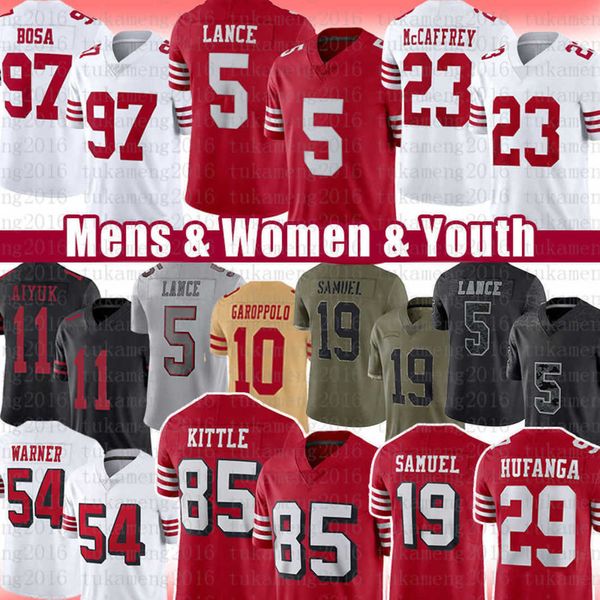 talanoa hufanga christian mccaffrey football jersey fred warner george kittle nick bosa trey lance deebo samuel jerry rice kyle juszczyk ron, Black;red