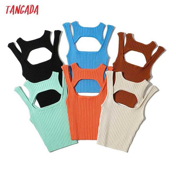 tangada women solid hollow out y2k cropped tanks sleeveless backless female knit 2lk12 210609, White
