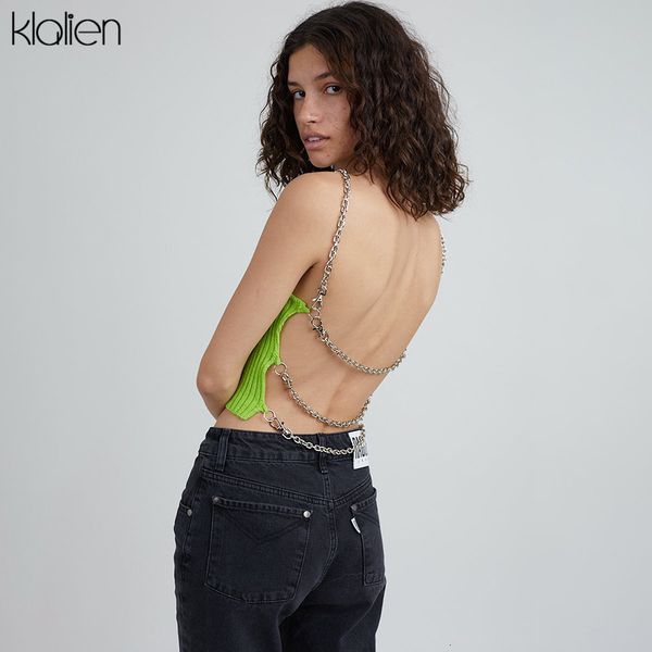 tanks fashion hollow out backless solid camisole women 2021 new casual streetwear party slim rib knit female crop top, White