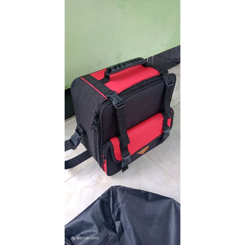 tas Riel isi 4pc dengan bahan tebal ples busa tebal .di tambah tudung hujan .water proof .untuk model ada 2 farian ..tinggal chat saja untuk pilih model nya