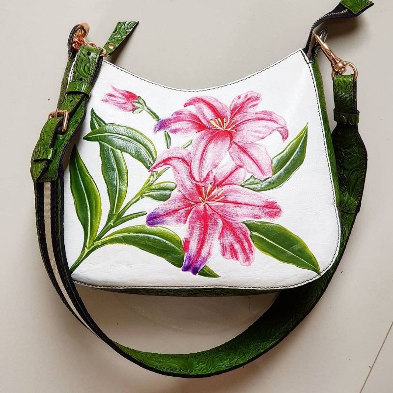 tas kulit sapi di ukir batik dan di lukis