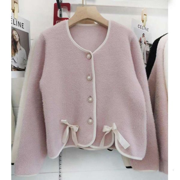 temperament socialite style bowknot imitation womens sweaters mink soft glutinous fur warm sweater jacket autumn, White;black