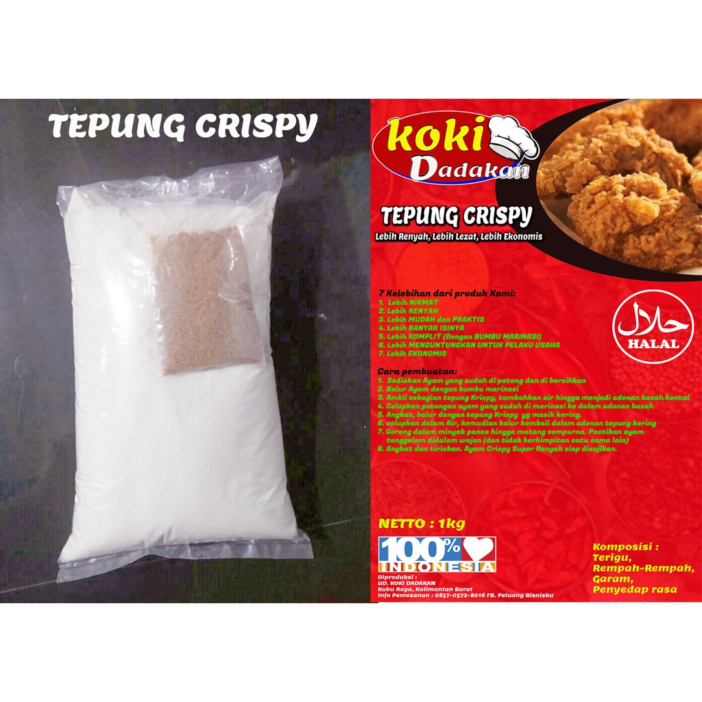 dapat digunakan untuk membuat ayam crispy, udang crispy, lele crispy dan aneka panganan lainnya.