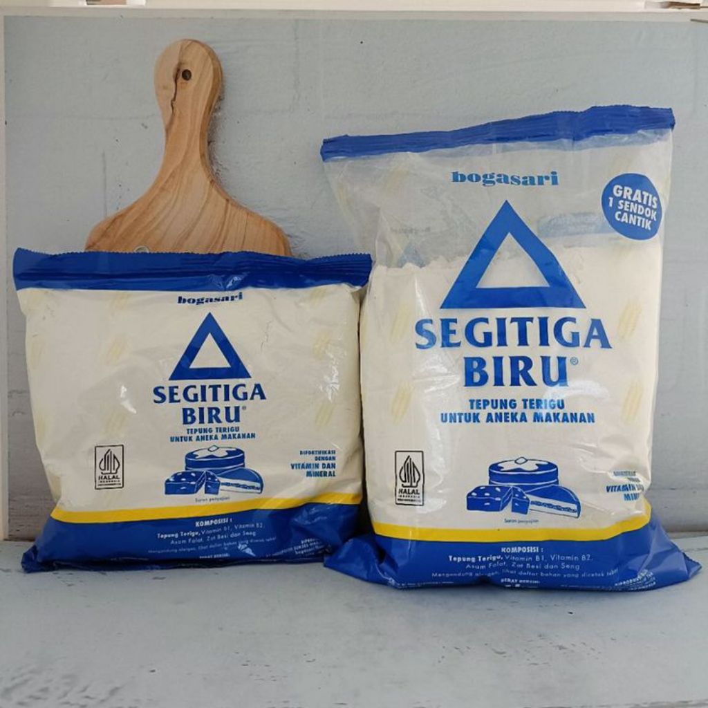 Segitiga Biru adalah tepung terigu yang cocok untukmembuat aneka makanan seperti bolu, brownies, cake, pisang, martabak manis, muffin, kue bulan, croissant, puff pastry, denish, bapia, pastel, kroket, risoles, dan lain-lain.