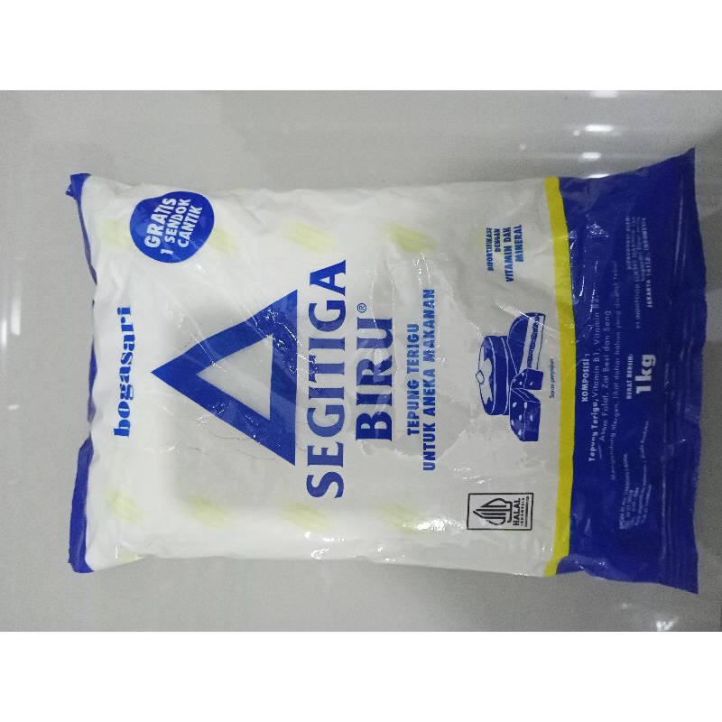 tepung terigu segitiga biru dengan kemasan 1kg untuk pembuatan aneka kue dan makanan