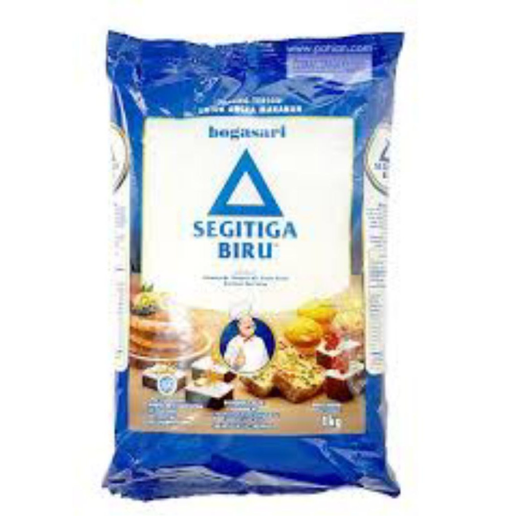 Segitiga Biru adalah tepung terigu yang cocok untukmembuat aneka makanan seperti bolu, brownies, cake, pisang, martabak manis, muffin, kue bulan, croissant, puff pastry, denish, bapia, pastel, kroket, risoles, dan lain-lain.