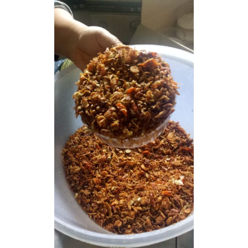 teri dan bawang goreng yang gurih dan produk selalu fres karena diproduksi rumahan