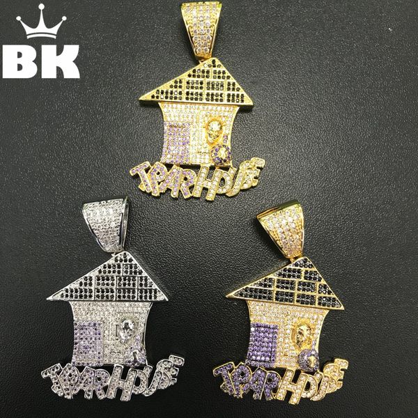 the bling king custom trap house cz pendant necklace hip hop full iced out cubic zirconia purple black white cz stone, Silver