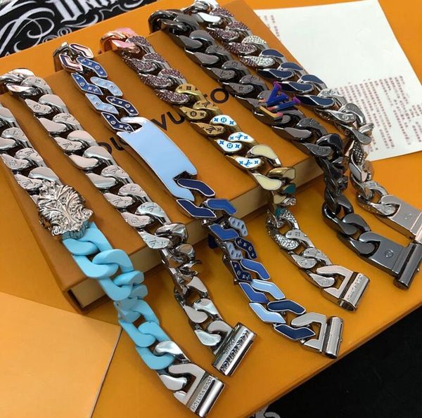 the classic necklace luxury jewelry design diamond 316l titanium steel engrave colored enamel thick chain links patches necklace, Silver