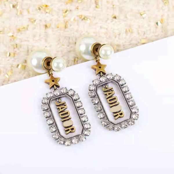 the new 74% off dijia classic pearl earrings female letter full diamond earrings silver needle0vfr, Golden