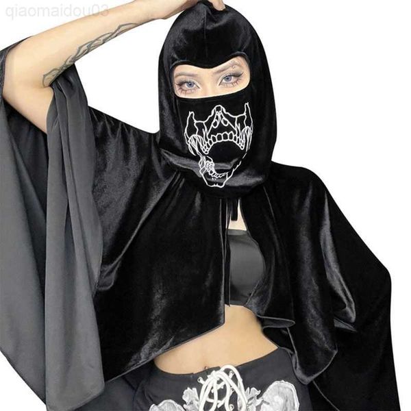 theme costume halloween death capelet bat wing tie up bowknot short hooded cloak poncho goth comes devil party accessories l230804, Black;red