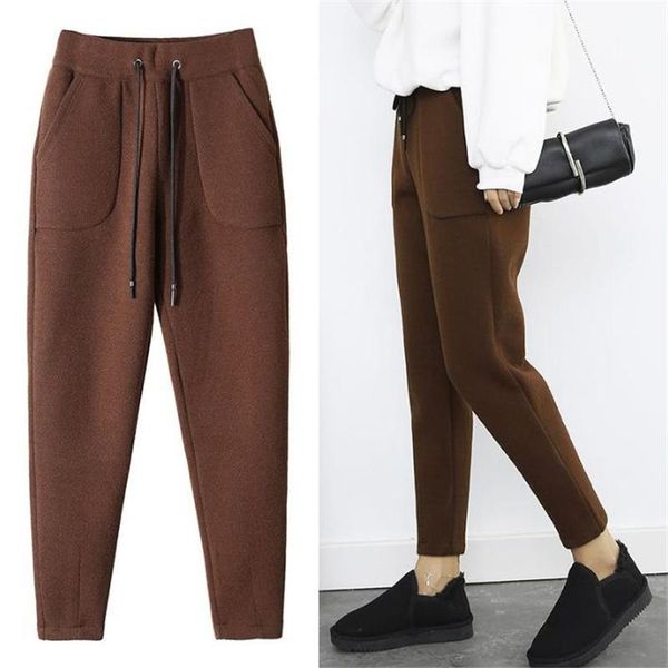 thicken women pencil pants 2021 autumn winter plus size ol style female work suit pant loose trousers capris women's &, Black;white