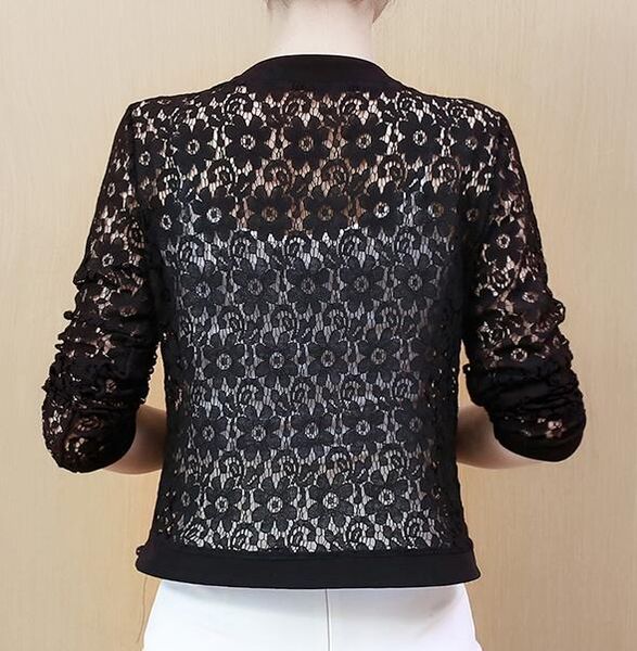 thin knitted sweater, women's cardigan jacket, 2019 summer thin sunscreen, short air conditioning shirt. lace shrug, White